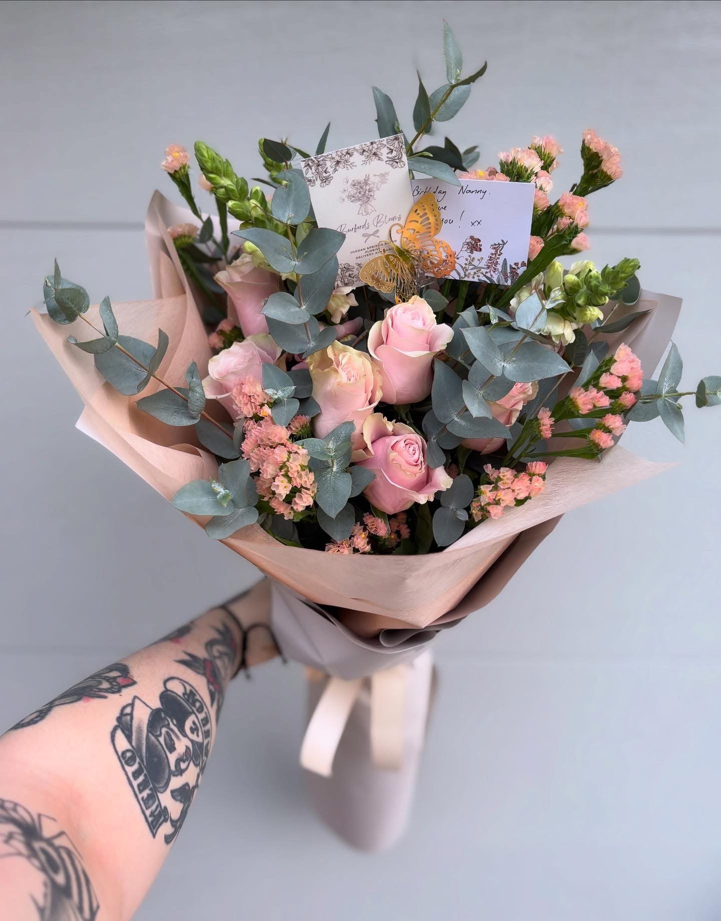 Each arrangement is thoughtfully handcrafted to deliver the timeless beauty of a blooming cottage garden — effortlessly elegant and full of heart.